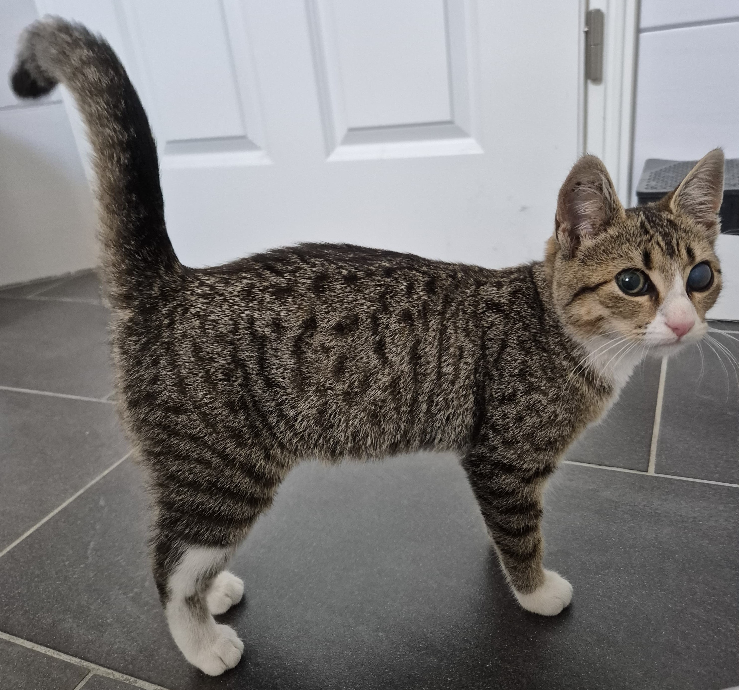 Trixie hat sich in ihrem neuen Zuhause super eingelebt. Sie kommt trotz ihrer Sehbehinderung (sie ist fast blind) gut zurecht und hat sich mit den vorhandenen Katzen schon angefreundet.